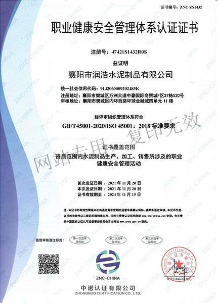 職業(yè)健康安全管理體系認(rèn)證證書